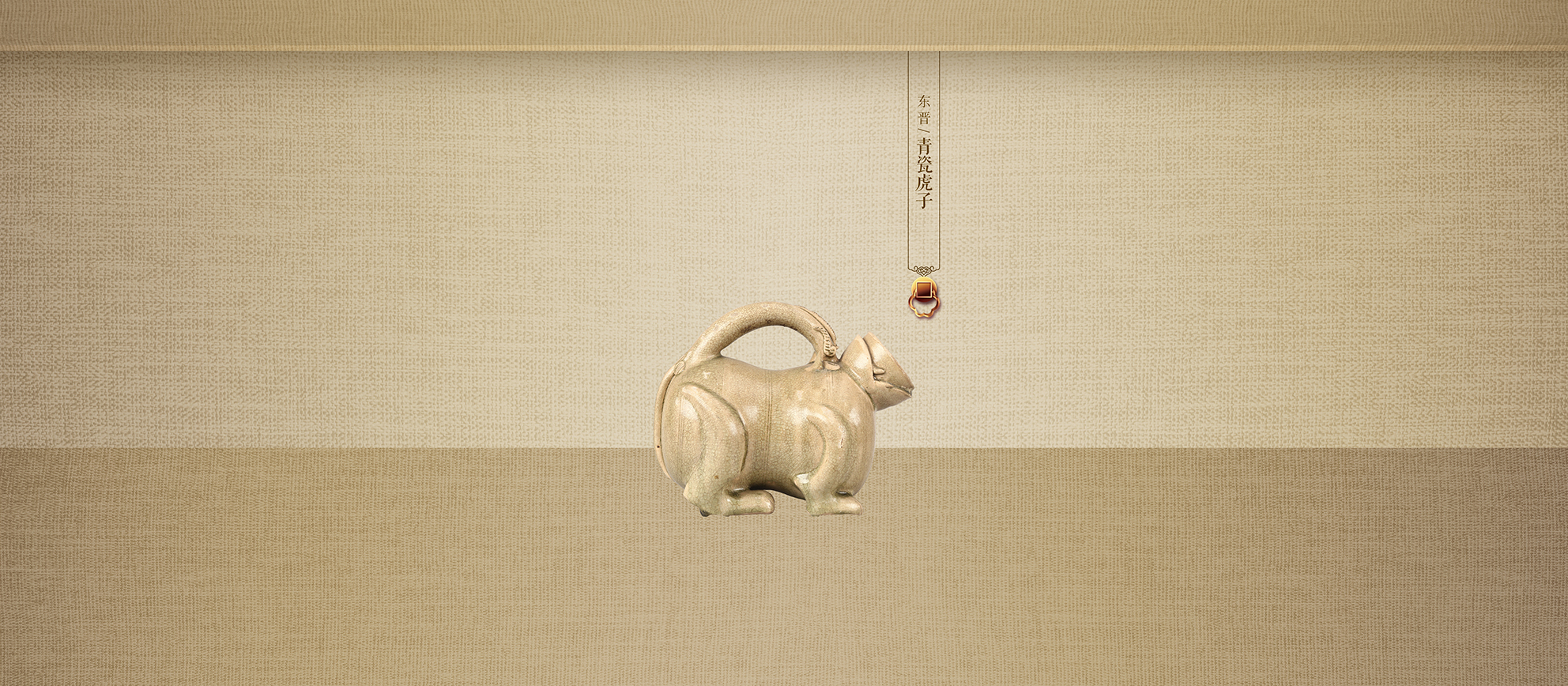 灰白胎,施青釉,流口为向上倾斜的直筒口,虎张口露齿,背有提梁,圆腹,腹下四足健壮有力,臀部贴塑一尾。