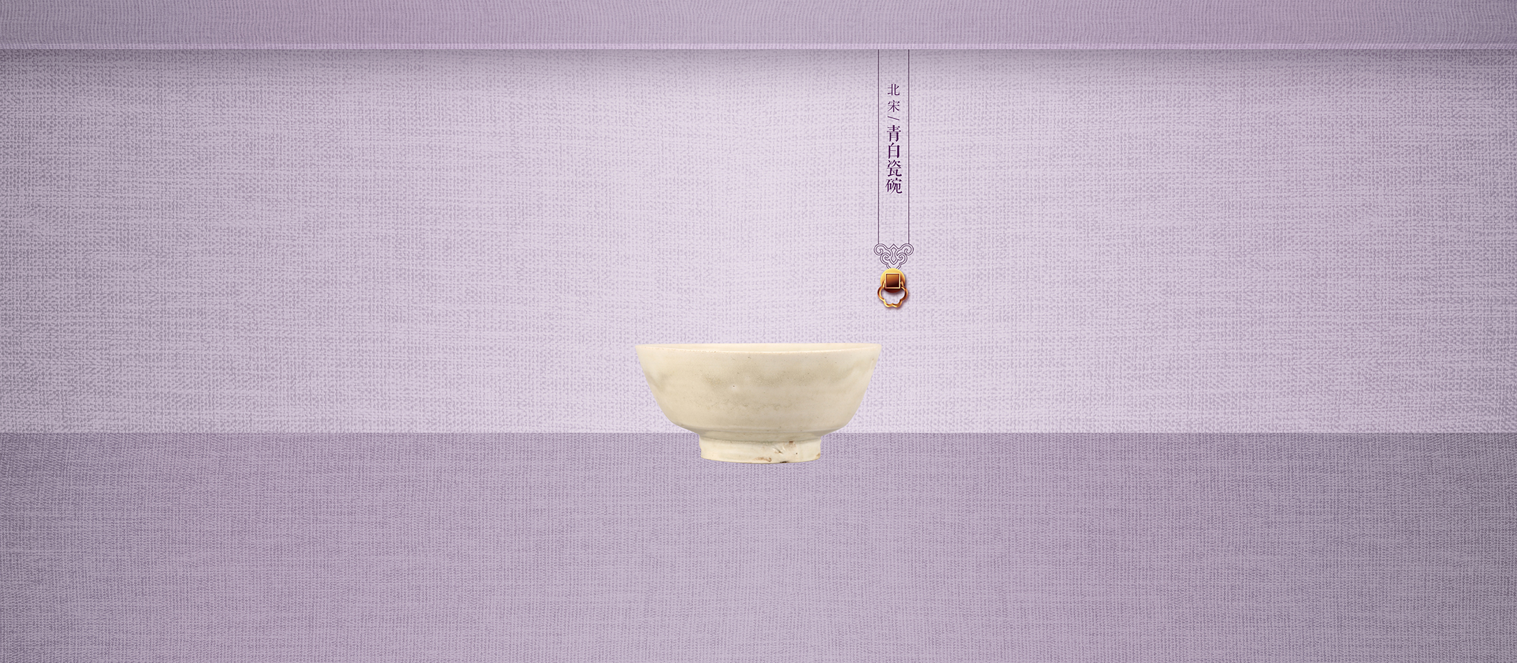 圆唇,敞口,斜直壁,圈足。通体施青白釉,碗体大而厚重。