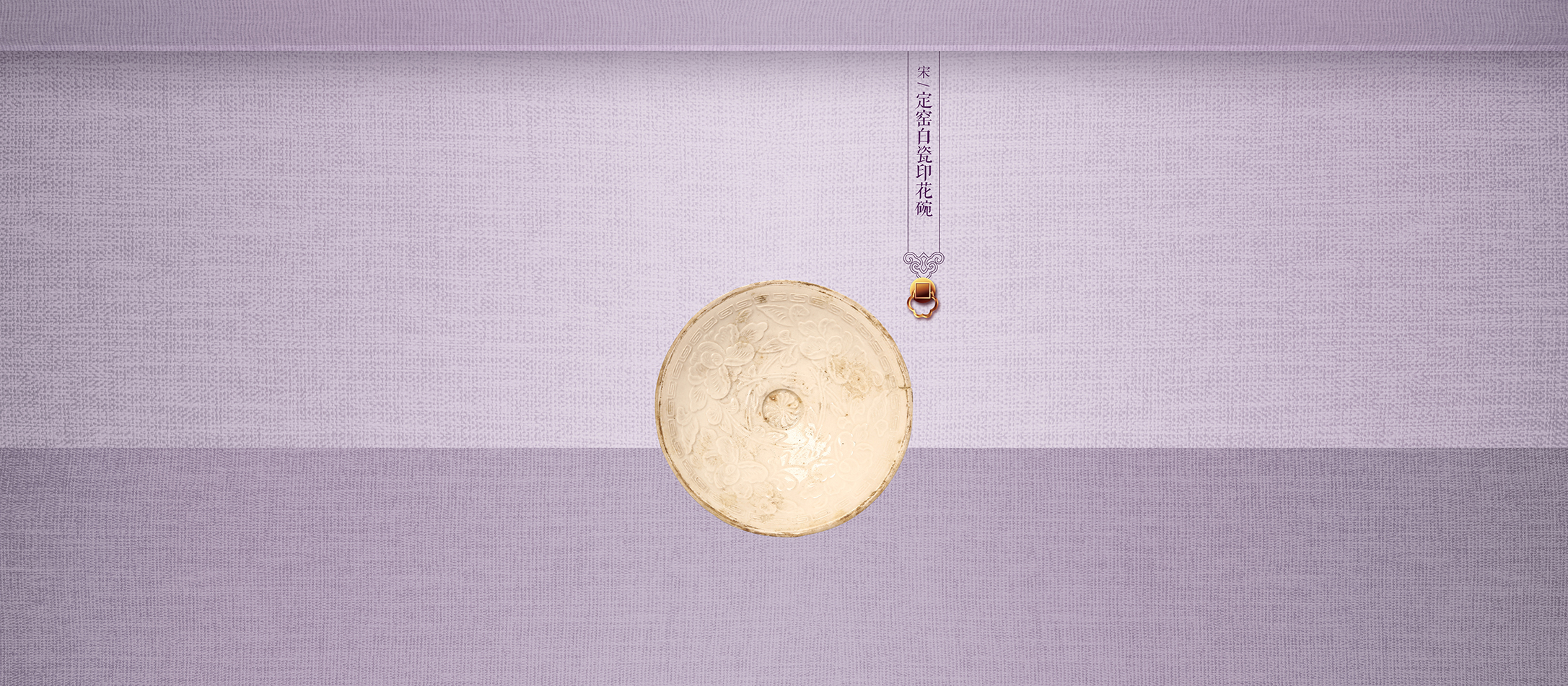 碗敞口,深弧壁,圈足。内外施白釉,碗内印花装饰,内底模印菊花一朵,近口沿处有一周回纹。印花布局严谨,纹饰清晰。碗外壁光素。