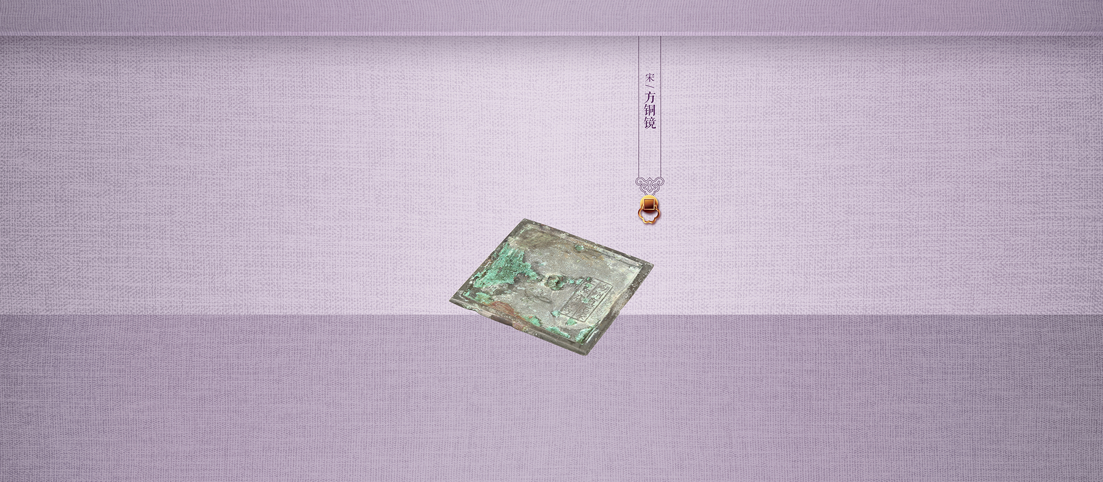 方形。小圆钮。钮右侧长方形框内有两行铭文“湖州真石家二叔店照子”。素缘。湖州为宋代制镜产地之一,其所制铜镜的特征为:镜背基本上没有花纹,惟在素地上标有铸镜字号。“湖州镜”为宋镜最重要的品种。