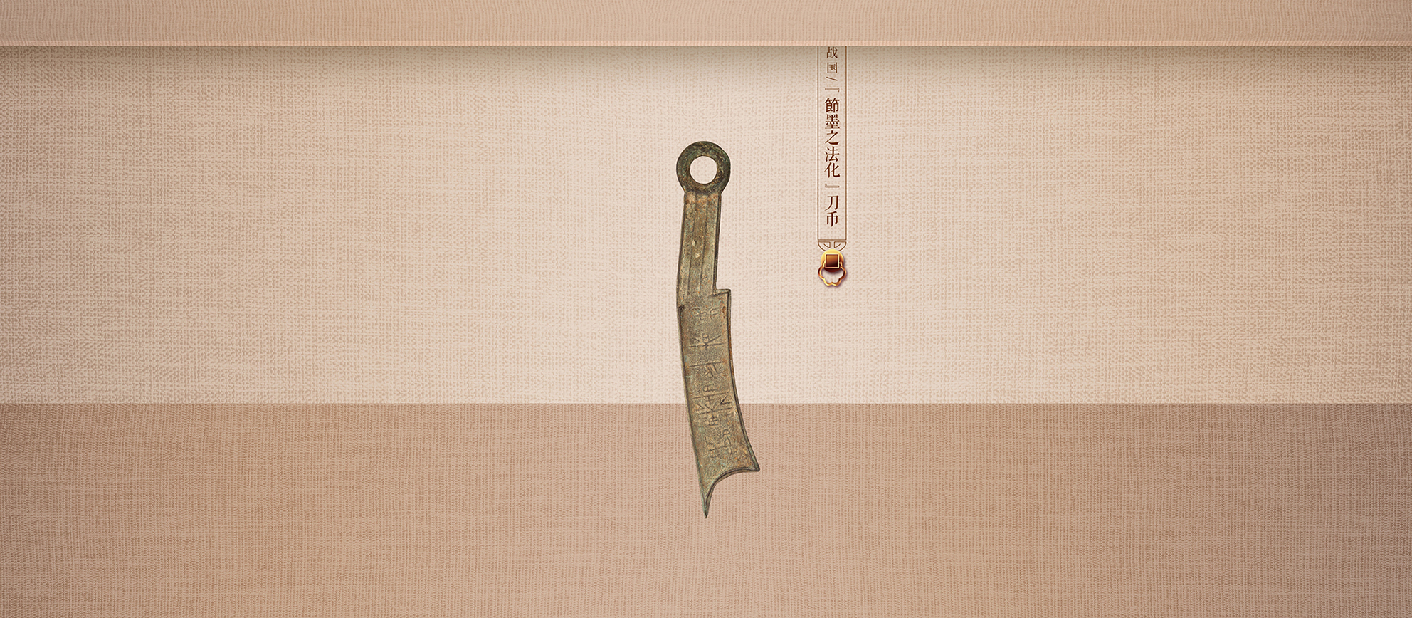 春秋战国时期齐邑节墨所铸刀币,馆藏刀币尖首,弧背,凹刃,刀柄略带弯曲,刀柄有圆环,刀身正面有“節墨之法化”钱文。节墨,地名。即即墨,齐邑,在今山东平度东南。刀体重大,铸造精美。
